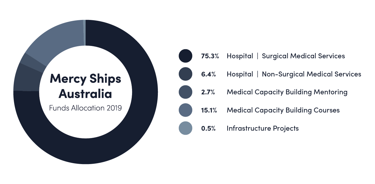 Mercy Ships delivers life-changing surgical and medical care and partners with local communities to help them to help themselves. With your generous help we have achieved the following results.